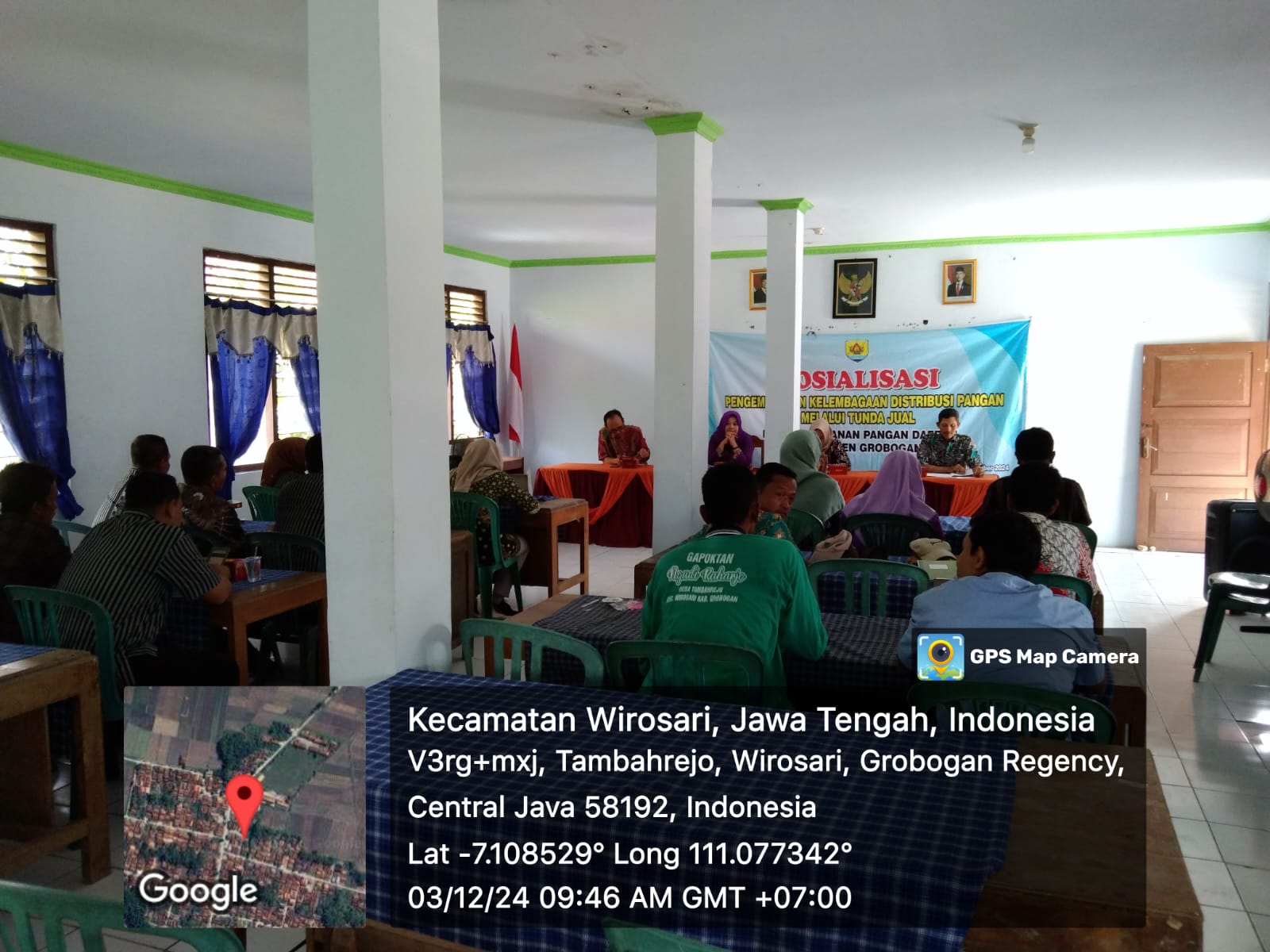 Grobogan, 6 Desember 2024 – Dinas Ketahanan Pangan Daerah (DKPD) Kabupaten Grobogan menggelar rangkaian kegiatan sosialisasi pengembangan kelembagaan distribusi pangan melalui mekanisme “tunda jual” di Desa Tambahrejo, Ringinkidul dan Tunggu pada tangggal 3-6 Desember 2024. Kegiatan ini dipimpin oleh Kepala Bidang Cadangan dan Distribusi Pangan, Mundriah, S.E., didampingi Analis Ketahanan Pangan, Widodo Prastowo.